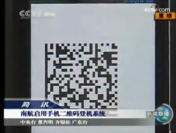 又訊:CCTV4月8日晚間新聞:全國首條手機二維碼航線啟用 旅客憑手機彩信可直接辦理登機