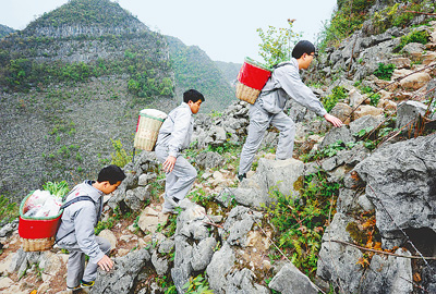 密切聯系群眾是我們黨的最大政治優勢。圖為貴州長順縣敦操鄉的“背篼干部”翻山越嶺為大山深處的村民捎帶生活用品。