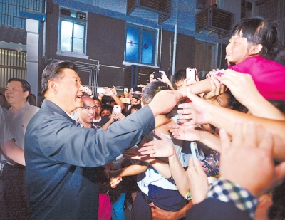 夜幕降臨,習(xí)近平走下樓。早已等候多時的居民們紛紛圍了上來。“總書記好!感謝總書記關(guān)心!”大伙爭先恐后地向習(xí)近平問好。“大家好!祝你們的日子越過越幸福。”熱切的話語,讓大伙的心和習(xí)近平緊緊貼在了一起。一陣陣熱烈的掌聲在人群中響起。
